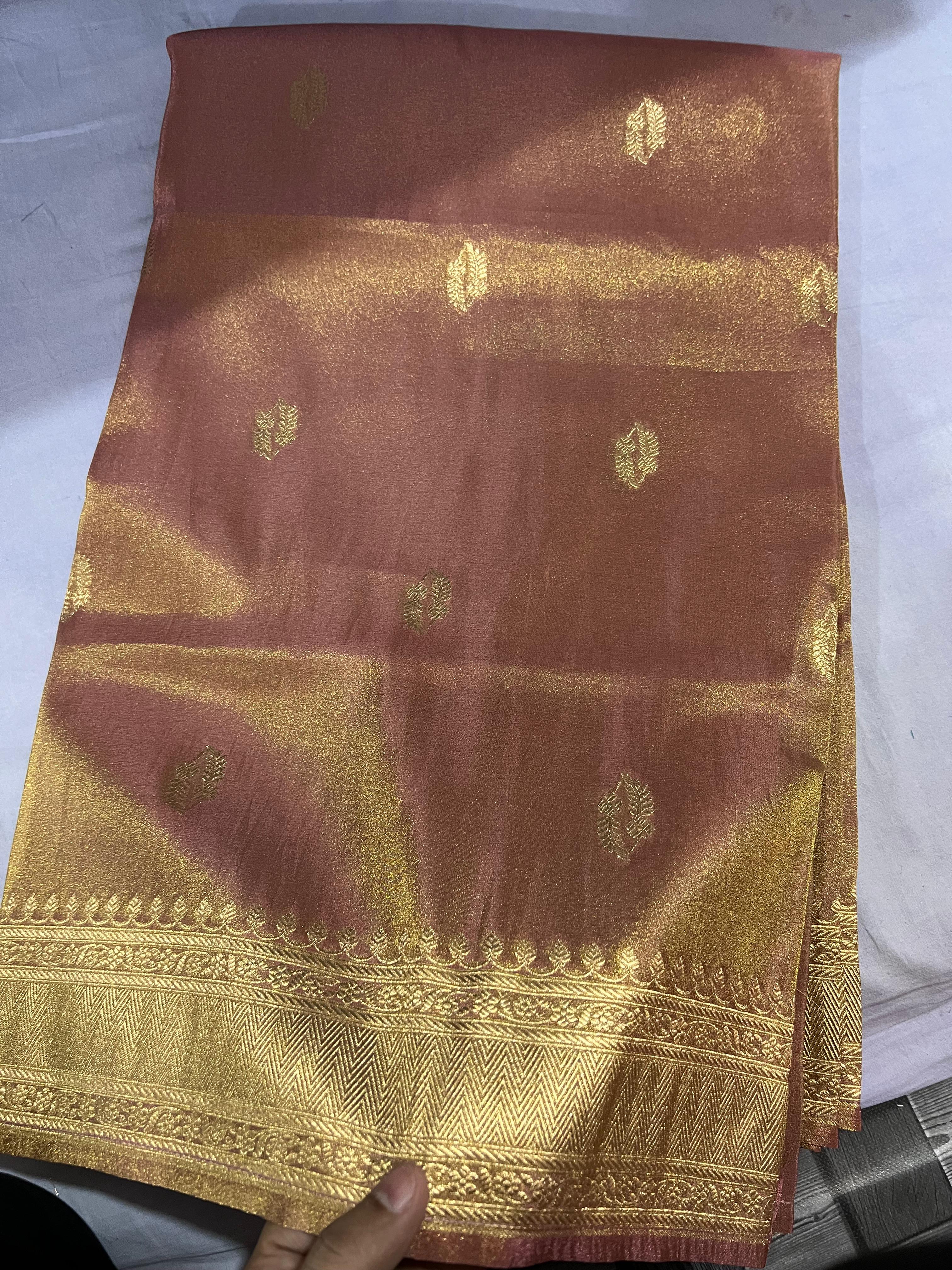 Whisper-light and golden hued—Tissue Silk sarees that shimmer with grace at every celebration.