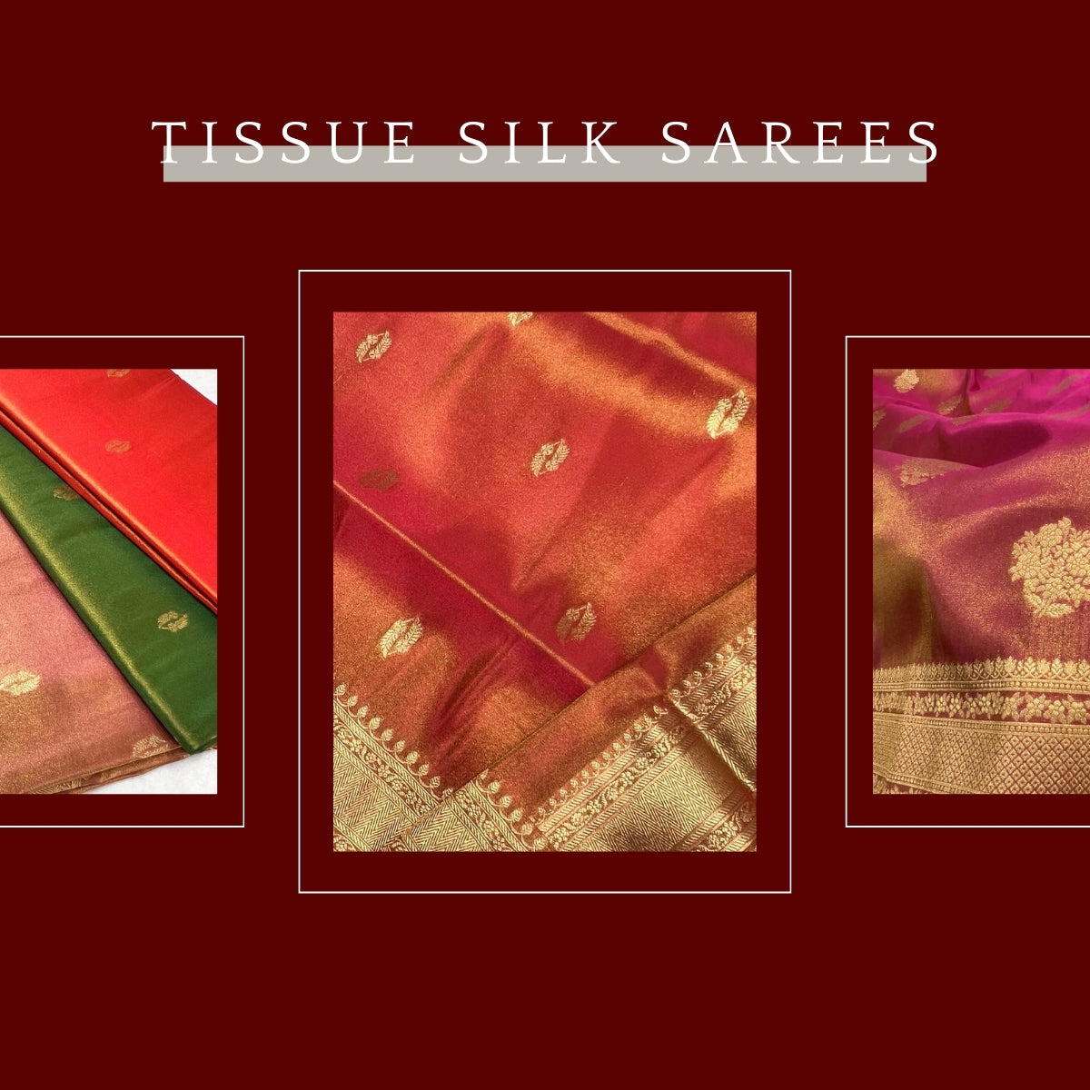 Whisper-light and golden hued—Tissue Silk sarees that shimmer with grace at every celebration.